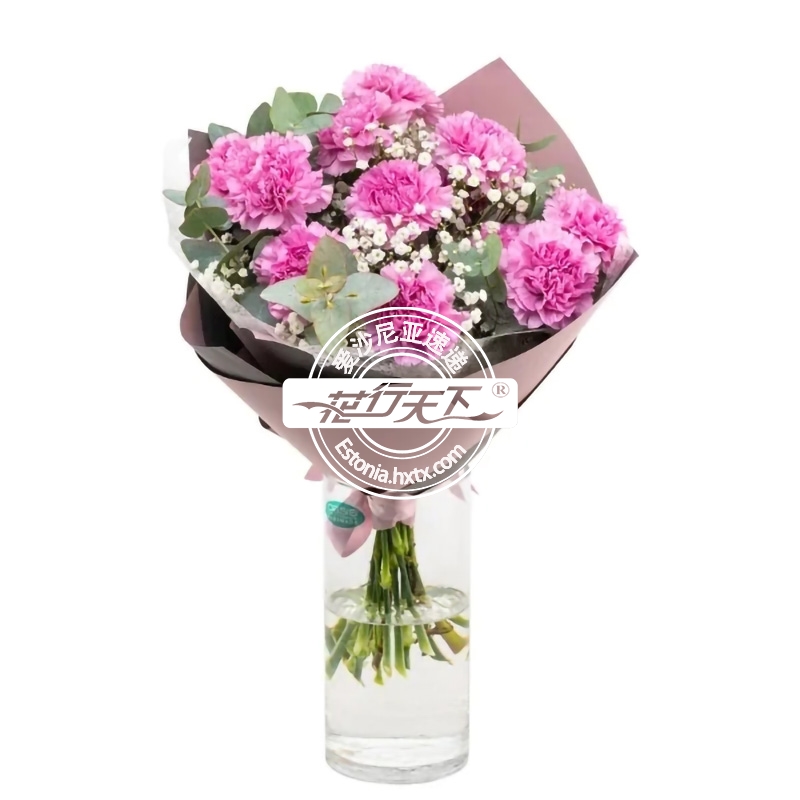 描述: 紫色康乃馨和满天星组成。