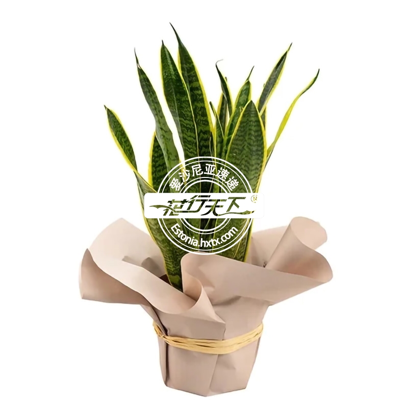 描述: 金边虎皮兰绿植、精美的纸包裹。